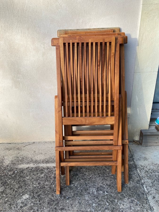 Coralie donne 4 belles chaises bois exotique, pliables, stockables à récupérer à Montpellier