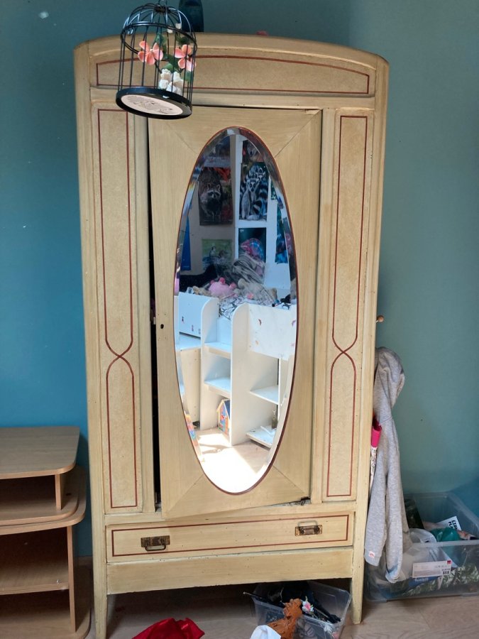 Petite rénovation à prévoir sur la porte de l’armoire et un traitement à prévoir, toute rénovée par un ébéniste il y a 10 ans. Très fonctionnelle et pratique car petite taille!