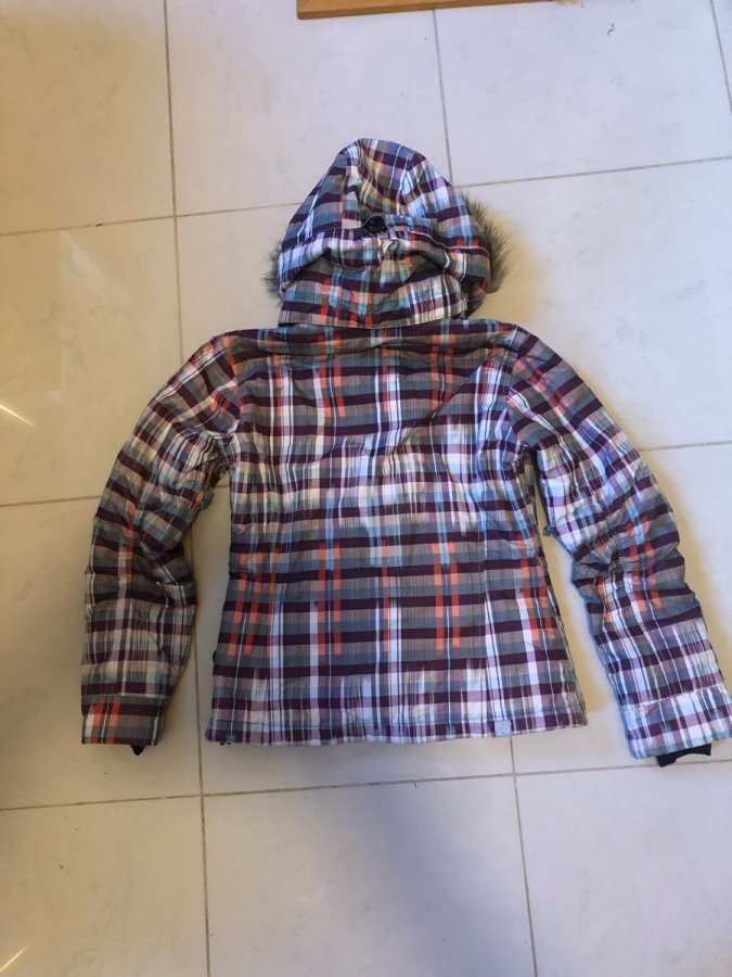 Joli blouson cintré, en super état. avec plein de poches intérieures et extérieures, capuche amovible, ceinture et poignets anti-neige, zip sous les bras pour aération.