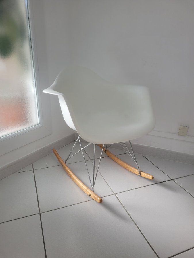Chaise blanche à bascule en très bon état. Possible de la récupéré à Clapiers ou Vailhauquès