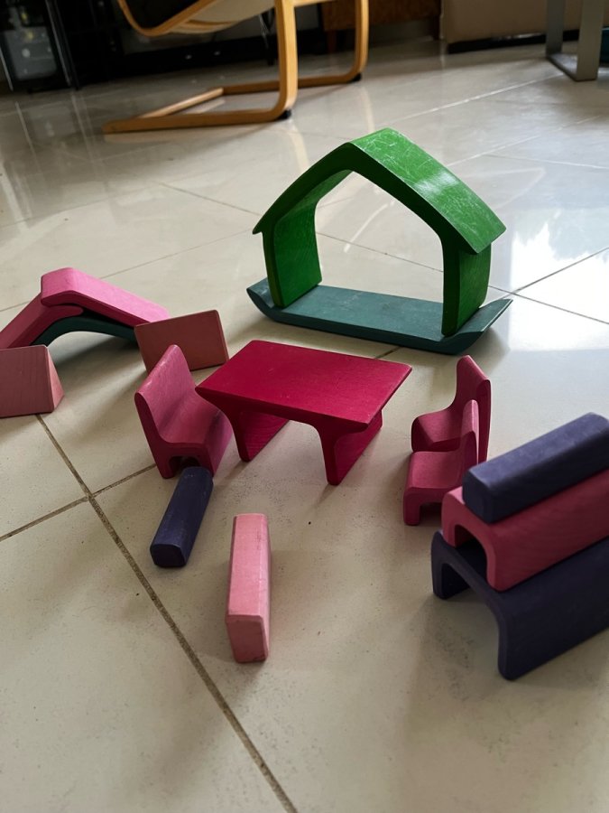 Jeu, décoration, puzzle avec tables, chaises, accessoires. Marque Glückskäfer. Taille l 22 x p 7 X h 15 cm