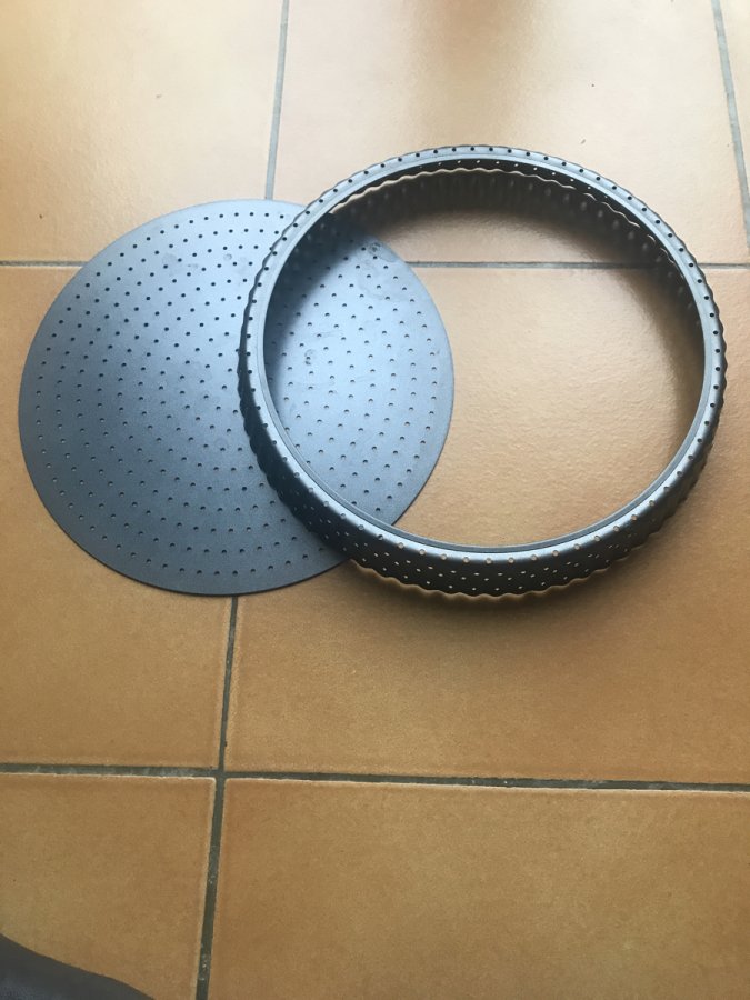Il est perforé pour faciliter la cuisson. Le fond est amovible