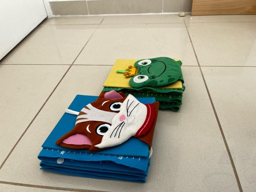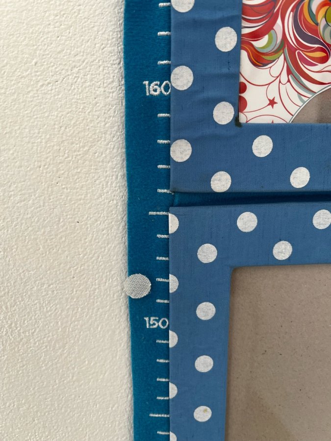Une décoration utile. Toise en tissu, avec 5 cadre 10x15 cm à accrocher sur un mur ou une porte pour décorer une chambre d’enfant